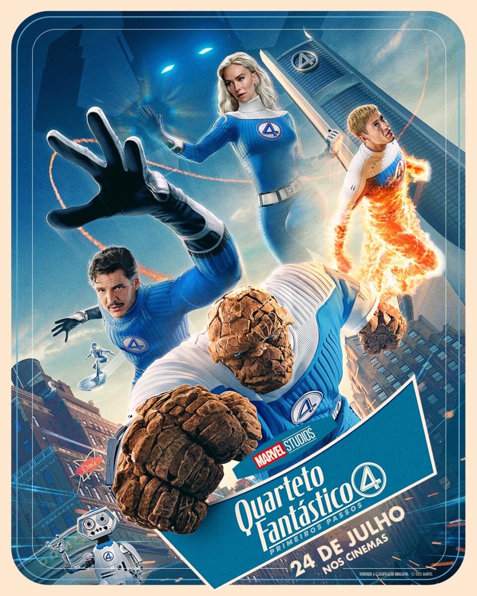 Uma breve atualização pra quem está por fora. Este ano seriam três filmes da Marvel. O primeiro, Capitão América Admirável Mundo Novo, foi o que se esperava: um filme pra “cumprir tabela” – não é ruim, não é bom, é apenas mais um filme genérico e esquecível. Depois veio a surpresa com Thunderbolts, um filme que ninguém esperava nada, mas que surpreendeu positivamente a maior parte do público. Mas os fãs aguardavam o terceiro, este novo Quarteto Fantástico, que prometia ser o ponto de partida para uma nova fase da Marvel.